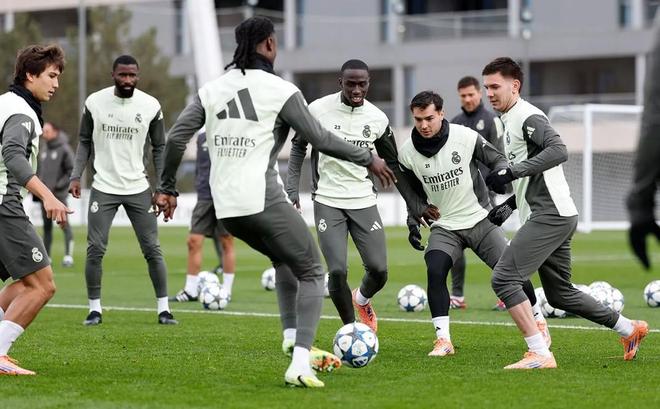 随后在草坪上,球队开展了多组位置战术演练及双区域递进式训练,训练课最后以小场地对抗赛收尾。马斯坦托诺随队参加了部分训练内容,阿拉巴则在室内进行单独训练;卡瓦哈尔与米利唐仍在按计划推进康复进程。